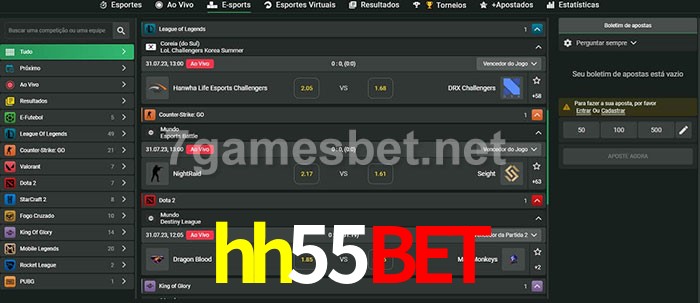 O hh55bet oferece uma grande seleção de opções de apostas em e-sports com probabilidades competitivas